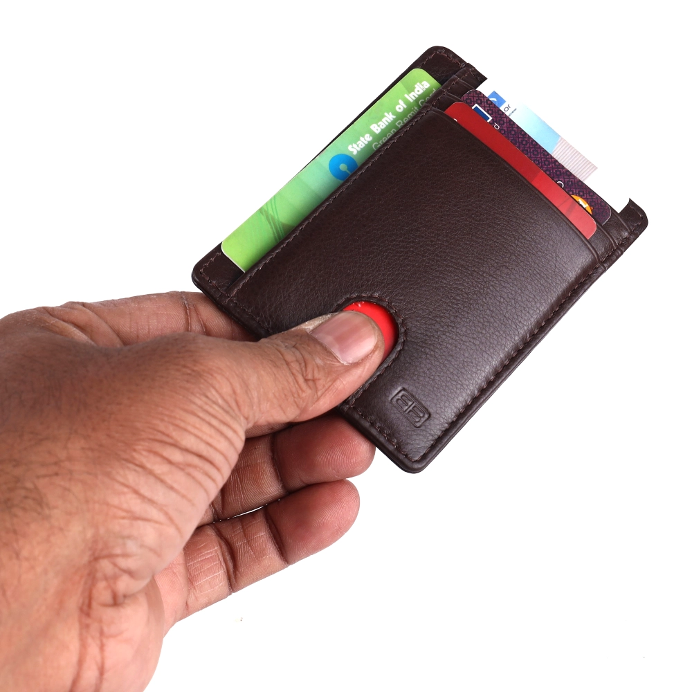 Choose this genuine leather card holder for a blend of style, security, and durability. It is the perfect slim wallet solution for men seeking a minimal yet functional accessory.