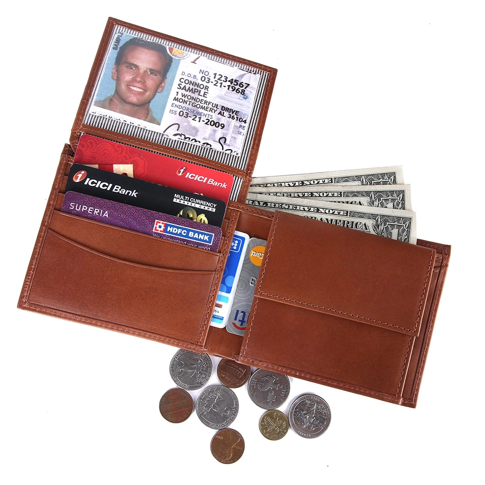 Premium Genuine Leather Wallet for Men with Coin Pocket – Vegetable Tanned RFID Bifold Wallet