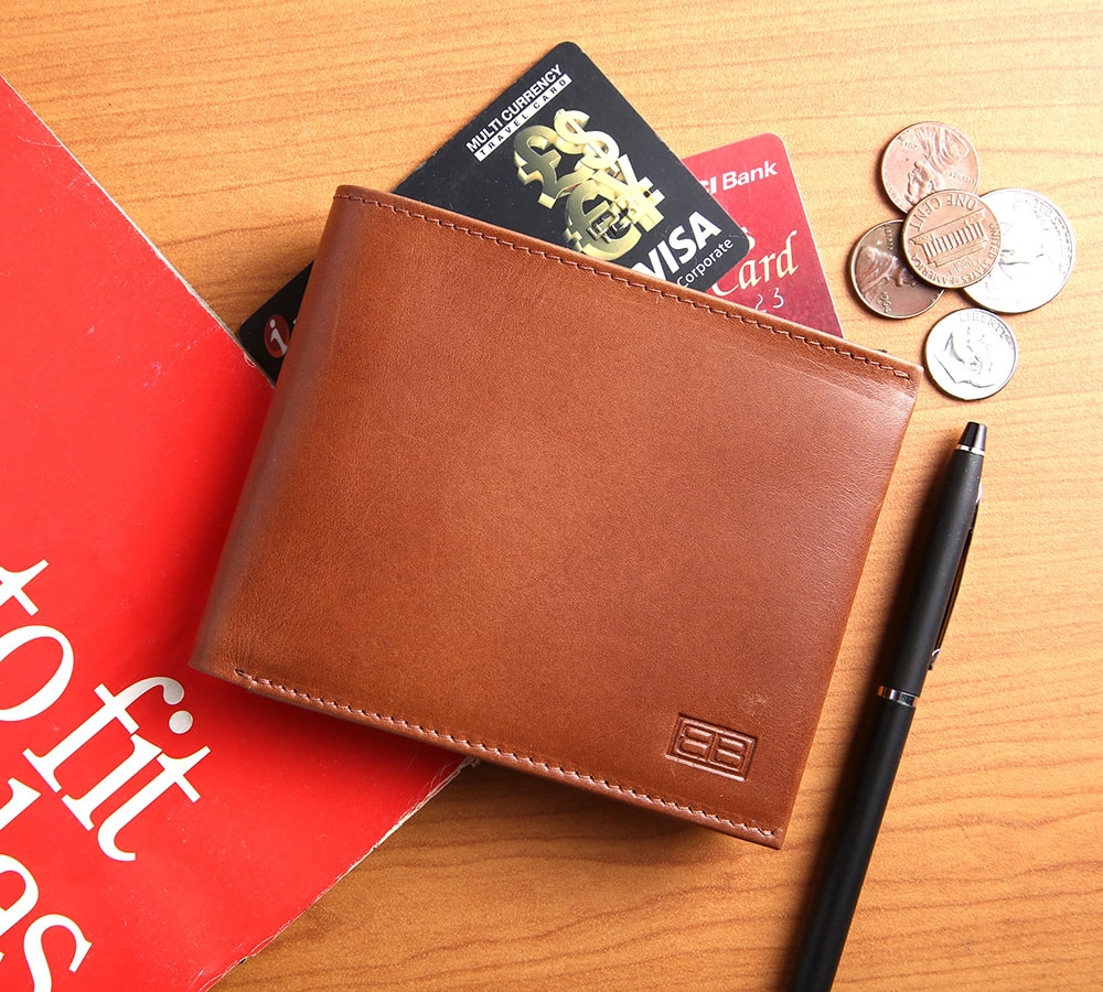 Vegetable Tanned Genuine Leather Wallet for Men – RFID Safe Bifold Wallet with Coin Pocket